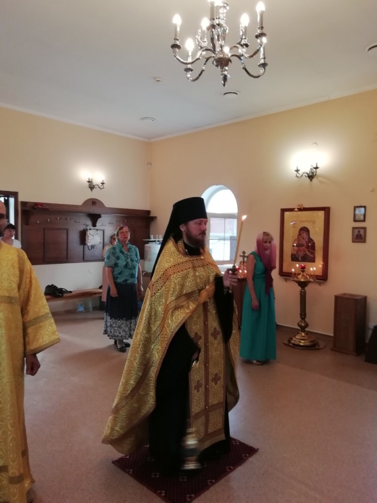 28 июня, накануне памяти перенесения мощей святителя Феофана, Затворника Вышенского, настоятель храма иеромонах Спиридон (Савин) совершил полиелейное богослужение.