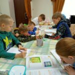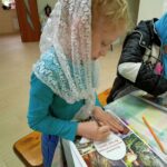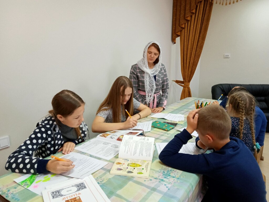 Воспитанники старшей группы сдавали зачет по церковнославянскому языку в храме, чтобы почувствовать свое соучастие в церковной жизни и в будущем, возможно, стать чтецами. Мария Александровна предложила им тексты псалмов и молитв, звучащих на вечерней и утренней службах.