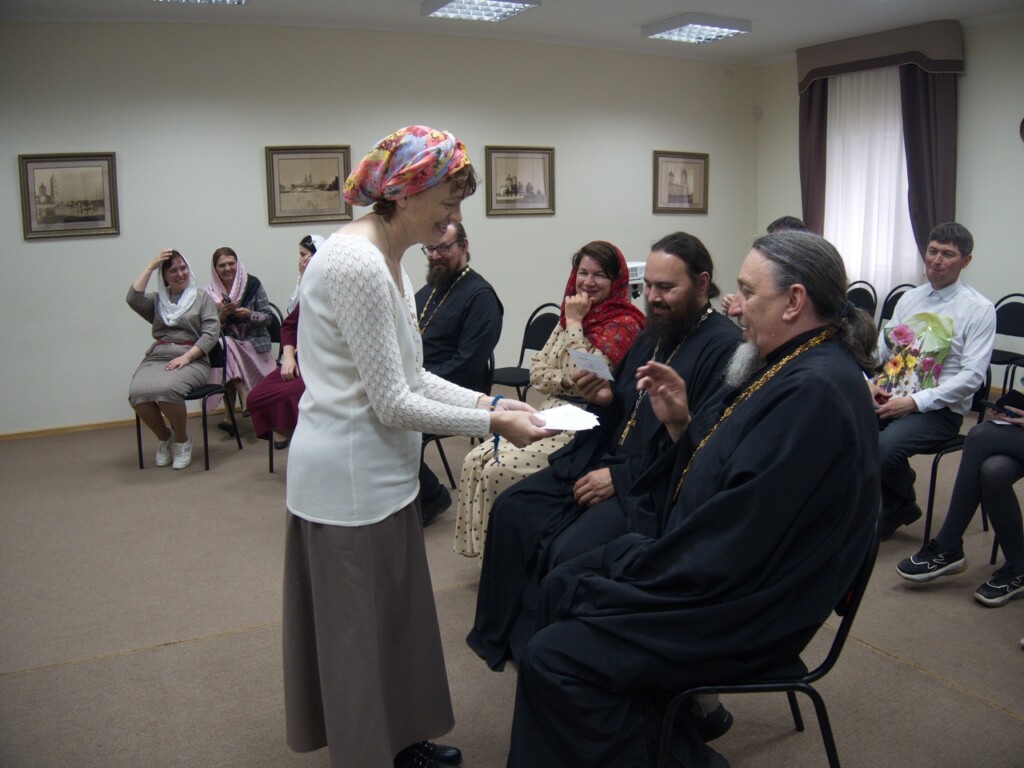 После этого вчерашние «студенты» решили устроить игровой экзамен своим педагогам. Священники и педагоги – Марина Евгеньевна Шмелева, Елена Николаевна Плахова отвечали на вопросы и ребусы по Священному Писанию. Преподаватели порадовались за выпускников и отметили хороший уровень их знаний и интересные задания.