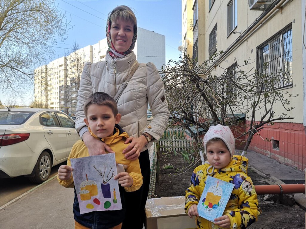 Конечно же, дети воскресной школы не могли не поздравить с приближающимся праздником Воскресения Христова воинов — им переданы иконочки, письма и открытки ручной работы с поздравлениями.