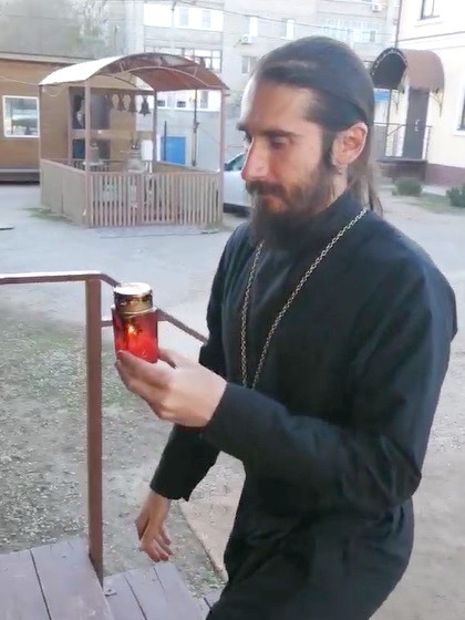 Настоятель нашего прихода иерей Иоанн Панков также доставил огонь в наш храм. Батюшка возжег лампадки во всем храме от привезенной святыни. Теперь любой желающий сможет взять огонек к себе домой.