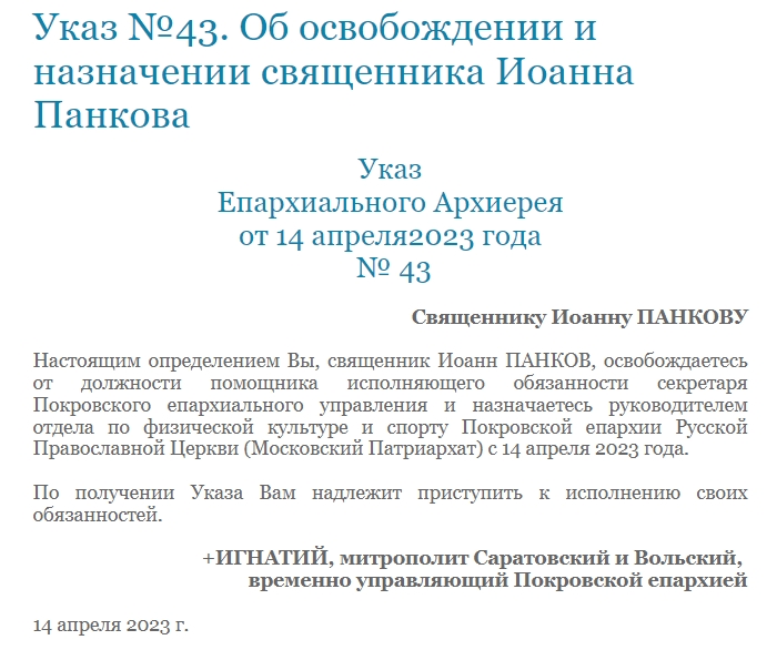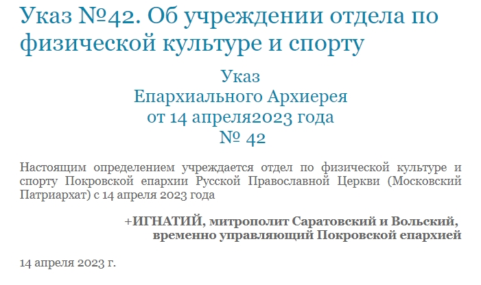 14 апреля в Покровской епархии был учрежден новый отдел — по физической культуре и спорту.